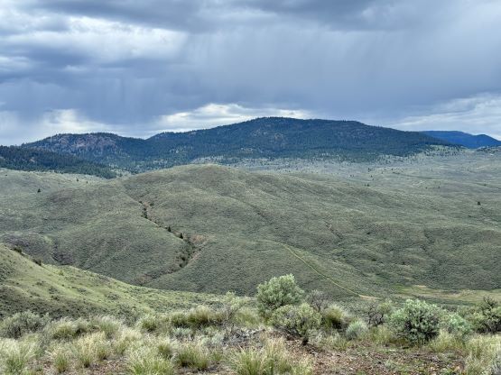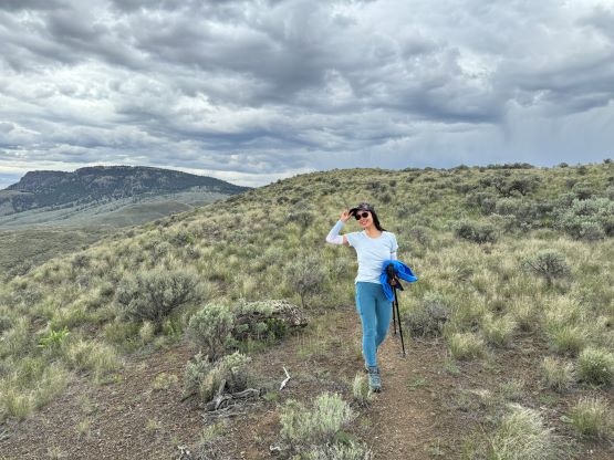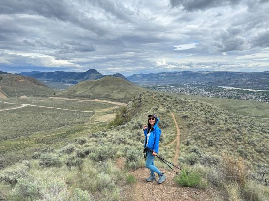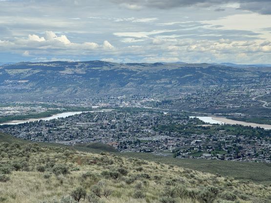 Batchelor Hill is the high point above Batchelor Heights and also one of the officially-named pimples in the vicinity of Kamloops. This hill does boast over 100 m prominence to qualify as a legit summit by the international peak-bagging standard. The area is low enough in the valley that the terrain and vegetation is mostly desert-like. Kate and I did not have much expectation from this short hike as this was simply a bonus add-on objective after completing Mt. Tod and Mt. Harper earlier in the day. I picked Batcherlor Hill simply because of its easiness but the views were actually quite good, especially given the amount of effort required to hike this hill.