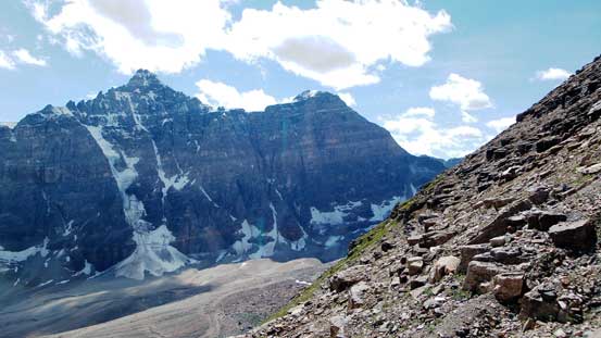 The descent went uneventful and tedious at times down the same route we came up. After so many hard trips in a roll I found this one to be completely lack of challenge of any sort. In roughly 1 hour we were back on Wenkchemna Pass trail and then there’s still fair a bit of hiking to go back to Moraine Lake.