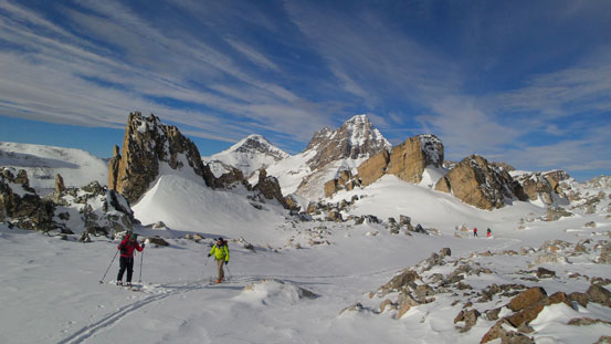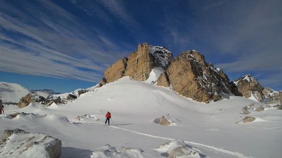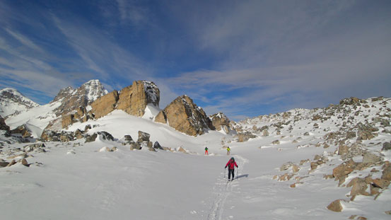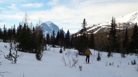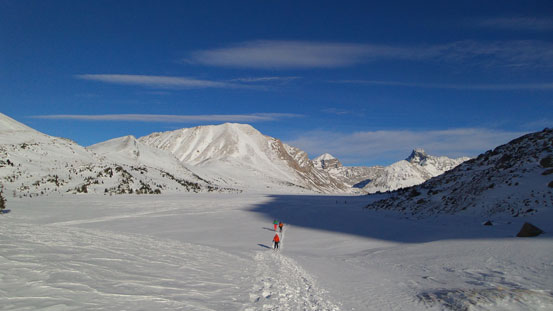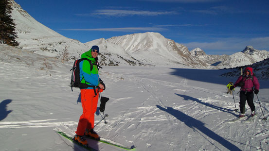 Skinning up towards Boulder Pass, with Ptarmigan Peak behind