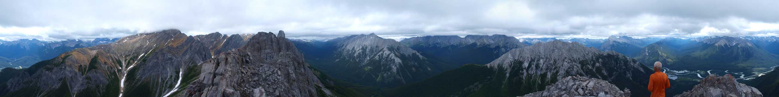 We retraced our route down. As I mentioned earlier, coming down that overhanging step was harder as a long reach was required. Wil did it more comfortably, and I did it okay. We came straight down from center-south col towards Cory Pass trail. Once on the trail, we saw hordes of hikers. Oh yeah, it’s Saturday with good forecast… The sky finally cleared up and we were able to take some nice photos of Bow Valley, Mt. Rundle and Mt. Norquay.