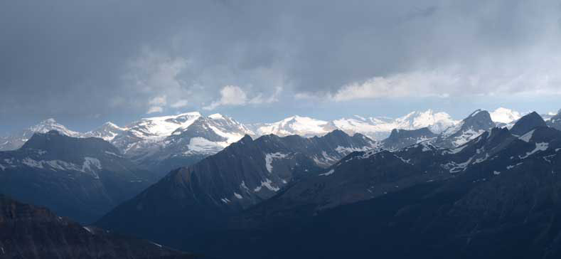 While there was still some sunshine on the distant Yoho peaks, the weather was building in very fast (and intense) around the continental divide..