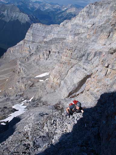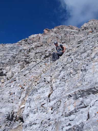 Can you spot Mike ready to descent the terrain just above first crux?? Make sure you click this photo to view a full sized.