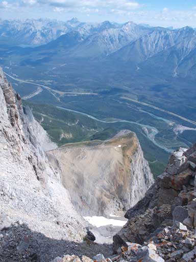 Like Mount Athabasca which I did a couple days ago, Mount Rundle is another mountain that I probably don’t need to introduce. Every person who has visited the Canadian Rockies should have a dozen photos of it. It’s also a classic scramble that normally sees a ton of people on a summer day. In August 2011, I went up the west end which is the “Mount Rundle” in Alan Kane’s scramble book. And one year later, I solo ascended the east end, which is also covered in Kane’s book. Both ends are classics, but none of them is the true summit of this mountain. The true summit (peak VII) is usually done as part of the Mount Rundle traverse (Alpine III, 5.5). This was a bit out of my league given my limited experience on technical terrain. One month ago, I ascended the true summit of Sulphur Mountain, hoping to see a scramble route up this main peak from its west slope, but I couldn’t. It wasn’t on my to-do list until last week when a (relatively) detailed recent condition update showed up, indicating the main summit of Rundle can be scrambled via a large drainage system that’s just to the left of the direct ridge line (from EEOR side).