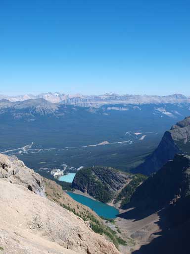 The rock band involved a series of 5-meter “moderate scrambling” steps. If wet, then use caution. The terrain became increasingly loose the higher I went, but there were always abundant paths helping me staying on track. It was pretty easy to follow and I soon gained Niblock/Whyte col. This is a good place to take a break as looking back you’ll see the different colors of Lake Louise and Lake Agnes.