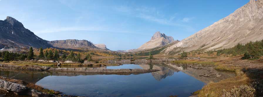 After a long dry period a lot of the “hard” peaks were back in shape. I’d really want to get another “climber’s scramble” done in this year, but on the other hand, I also wanted to take full advantage of this larch season. I threw out two possible objectives to a fellow Edmontonian peak bagger, Mike Mitchell (Arcturus): Oyster Peak to Skoki Mountain, or Mt. Daly + Mt. Niles. Mike chose the former. The distance (44 km) would be similar to a few insanely long traverses that I’d done earlier this year, but with much better trail system.