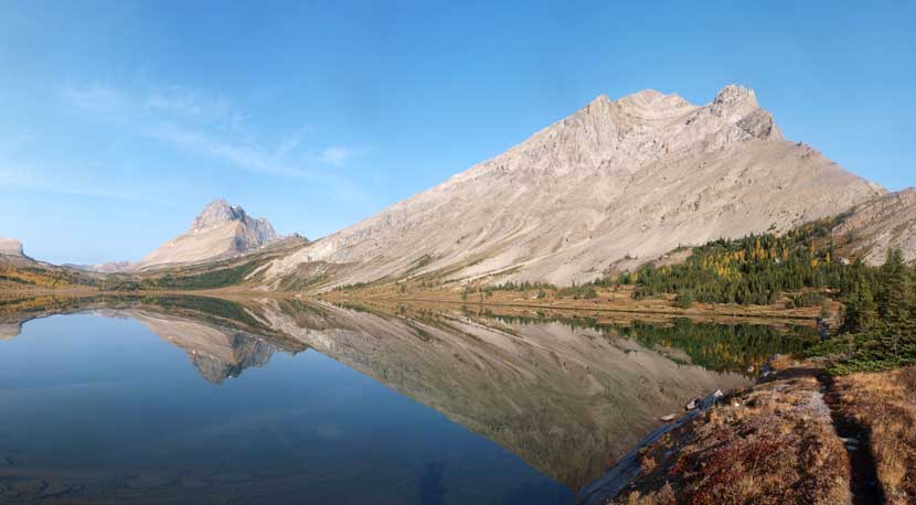 Ptarmigan Peak and Fossil Mountain, and their reflections in Baker Lake