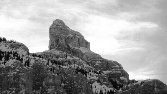Originally Ben, Vern and I were considering Center Peak down by Crowsnest, but with an increased wind warning issued for southern Alberta we had to switch our plan at the last minute. Instead of down-grading our objective or cancelling the trip we decided to try something different. We figured given the orientation and local topography the ascent route on Phantom Crag could potentially be relatively sheltered from the SW gusts. On the other hand the recent strong wind could also do us favour by stripping off the alpine especially since Phantom Crag is located on the easternmost part of the Rockies. And combined with the fact that crux 5.4 wall is short we figured if bringing a ton load of rock and mixed climbing gears we should have a fairly high chance of success. Of course none of us was 100% confident, but it’s not a bad idea to try neither. Else what could we do at this time of a year…
