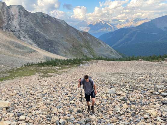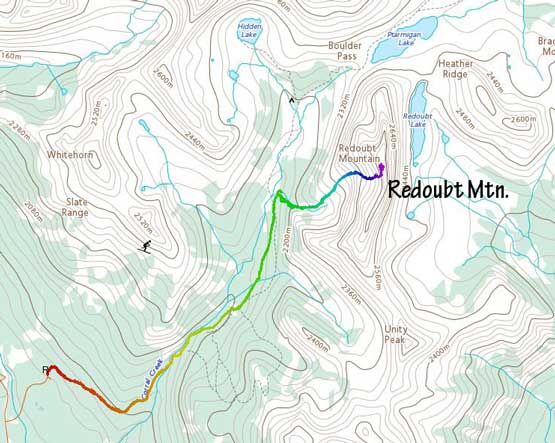 Redoubt Mountain is very recognizable from almost everywhere in the vicinity of Lake Louise and Skoki areas and there are two published routes. The Alan Kane’s scramble route used to be the standard route a dozen or so years ago but Bob Spirko’s route is the more efficient option. The majority of the scramble is class 2 with one or two steps of class 3 near the summit. The rock quality is not great but this is the Rockies so what else could I expect. I made a spontaneous decision to scramble Redoubt Mtn. on the first day of my Canadian Rockies road trip. I sent out a bunch of invites but to no avail, so I eventually just sent out an open invite on Instagram. JP Dunn from Banff signed up for the day and we agreed to meet at the trail-head at 7 am.