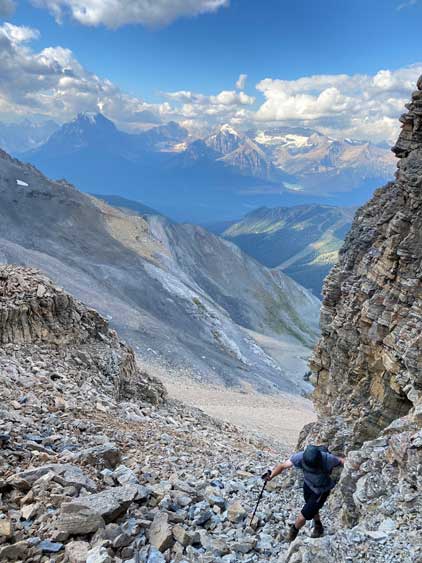 On the descent we mostly just retraced the exact same route we took but did some variations here and there, mostly unintentionally. Inside the gigantic gully there were multiple ways to go and the difficulty was similar. We did pick up a “trail” in the forest but lost it towards the bottom where things became steep, so overall I do not believe the existence of an actual trail, so light bushwhacking is required for this objective. The rest of the descent was boring and our round trip time was about 6 hours. I then drove eastwards to Canmor to prepare for the next few days’ climbs.