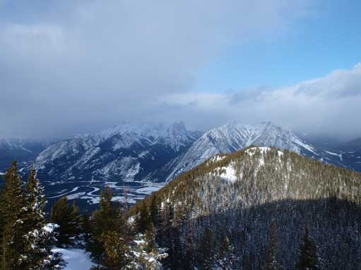 Looking south towards the other peaks on Sulphur Mountain