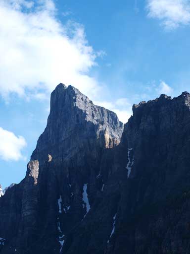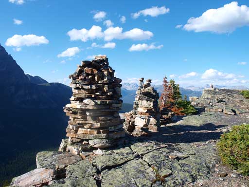 Once topping out of the gully, the summit was only 5 min away. The summit is very flat, so you have to walk around the edge to soak in the views. There’re several large cairns (larger than yourself). I guess it’s because this mountain is so short so that people have time to enjoy the summit stay. Despite the low elevation, the summit view was awesome towards all direction. Due to the sun direction, I didn’t get a good view of the Ten Peaks, Larch Valley and Mt. Temple though.