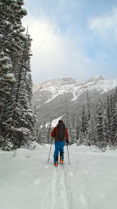 The forecast for this past Saturday was somewhat interesting. The weather was bad (scattered flurries), road condition was poor (“red” on AMA Road Report), but avalanche condition was low/low/low for Banff/Yoho. We knew based on experience that good stability like this rarely happens in winter months, so once it does happen we just have to make use of it. The ascent of Boom Mountain would involve complex avalanche terrain but doesn’t have challenging navigation on open terrain, in such way that we should be able to make the summit even in a full-on white-out. Ben did an excellent job driving down Highway 2 in downright miserable condition and we arrived in Canmore by midnight. There was an additional 5-10 cm snowfall overnight, making even more interesting driving condition on Saturday morning, but we managed to get to the trail-head by Vermilion Pass with no incidence.