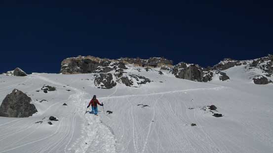 Arrived at the base of our ascending gully. Note the bush ahead…