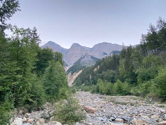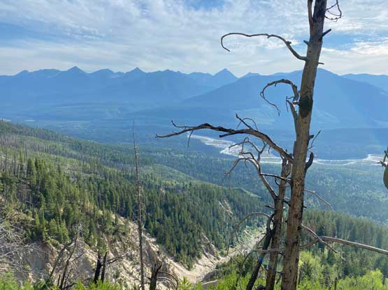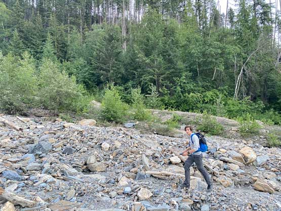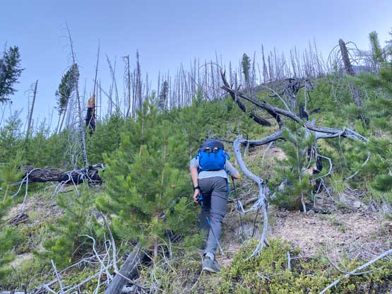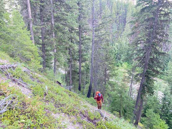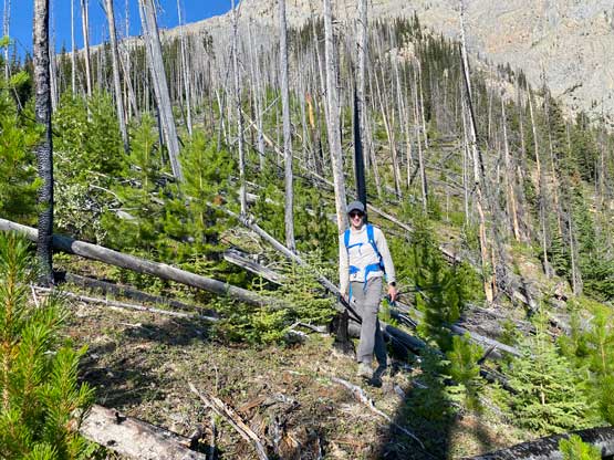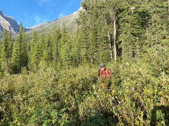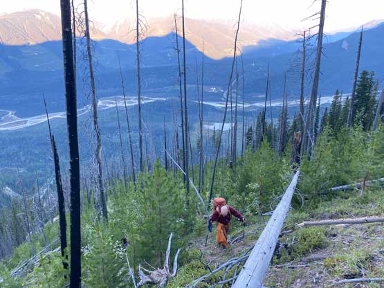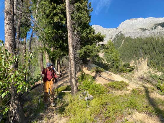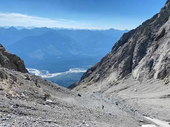 With all the down-climbing behind us we could finally take another break to take off the helmet etc. but the challenge was not over yet. The day was smoking hot and the entire forested ridge was baked under the merciless sun for hours and we must face the heat. I led in front and the other two had to also suffer from breathing in the dust. At least we did great on route-finding in the woods by mostly retracing the route took on the way in. We exited the timbered ridge back into the rocky drainage a little bit sooner than the morning, and this line was a little bit bushier at the bottom. The rest of the return was rather uneventful but the mosquitoes were horrendous. They somehow didn’t get bothered by the sprays so I got quite a few bites. They were even at the parking lot but thankfully I had a bug jacket in the car that surely became handy. Our round trip time was 13.5 hours including all stops and detours. We definitely didn’t repeat Sonny and Grant’s 24-hour epic but we were also not as fast as Devan Peterson’s 8.5 hour run. In the end I think our pace was reasonably fast especially considering all the errors we made on the slabs. I won’t go into the debate as whether this peak is a “scramble” or not as I’m into that. The conclusion of my hypothesis? I think South Goodsir has complicated terrain at least two times longer with more exposure and much worse rock quality, but the lines we took on Chancellor on both ascent and descent were more technically difficult. Had we stayed on the easiest path, this peak would’ve been much easier but can you find the easiest path that’s the main question. After being up there myself I still can’t say if I go back (which I’ll never) I can definitely find the correct path… I was also mentally drained and physically exhausted after these two days of hard work so spent the next day driving leisurely back home.