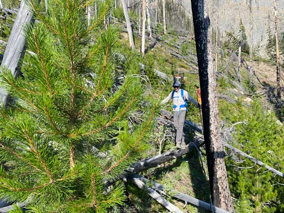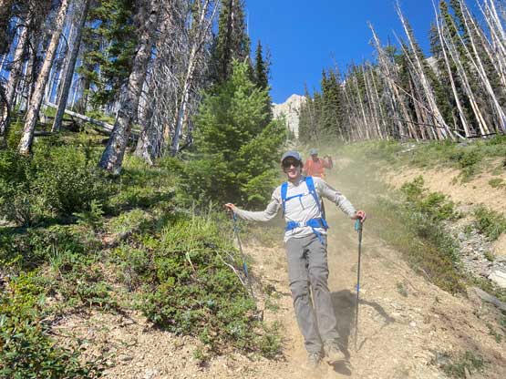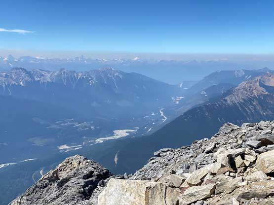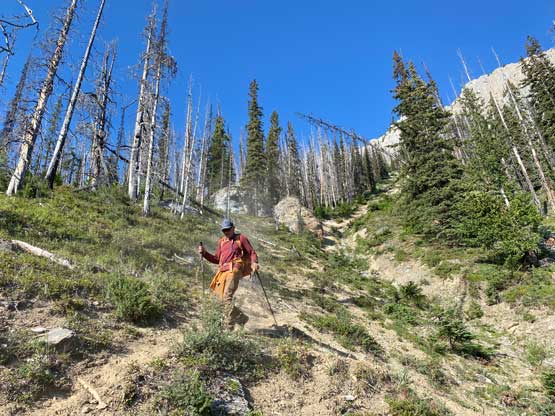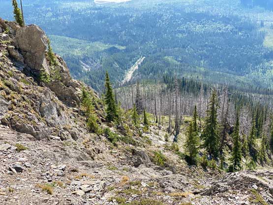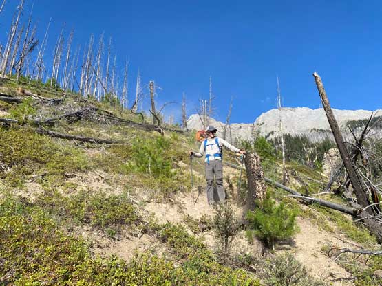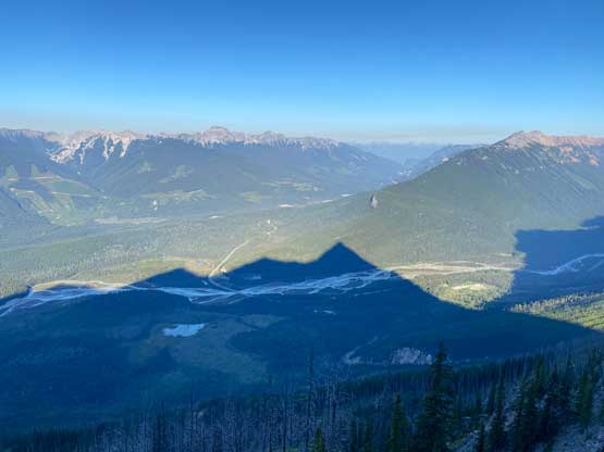 With all the down-climbing behind us we could finally take another break to take off the helmet etc. but the challenge was not over yet. The day was smoking hot and the entire forested ridge was baked under the merciless sun for hours and we must face the heat. I led in front and the other two had to also suffer from breathing in the dust. At least we did great on route-finding in the woods by mostly retracing the route took on the way in. We exited the timbered ridge back into the rocky drainage a little bit sooner than the morning, and this line was a little bit bushier at the bottom. The rest of the return was rather uneventful but the mosquitoes were horrendous. They somehow didn’t get bothered by the sprays so I got quite a few bites. They were even at the parking lot but thankfully I had a bug jacket in the car that surely became handy. Our round trip time was 13.5 hours including all stops and detours. We definitely didn’t repeat Sonny and Grant’s 24-hour epic but we were also not as fast as Devan Peterson’s 8.5 hour run. In the end I think our pace was reasonably fast especially considering all the errors we made on the slabs. I won’t go into the debate as whether this peak is a “scramble” or not as I’m into that. The conclusion of my hypothesis? I think South Goodsir has complicated terrain at least two times longer with more exposure and much worse rock quality, but the lines we took on Chancellor on both ascent and descent were more technically difficult. Had we stayed on the easiest path, this peak would’ve been much easier but can you find the easiest path that’s the main question. After being up there myself I still can’t say if I go back (which I’ll never) I can definitely find the correct path… I was also mentally drained and physically exhausted after these two days of hard work so spent the next day driving leisurely back home.