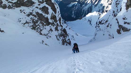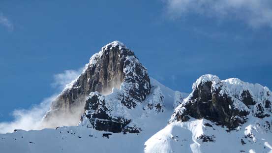 This is totally intense. Huge and complex hike for an approach, a very tall alpine snow climb, plus having to contend with weather and potential avalanches. Hats off to you.
