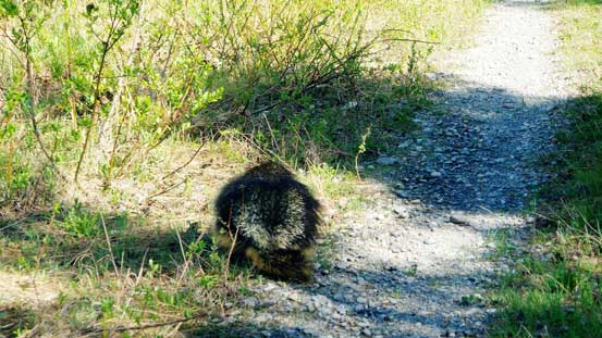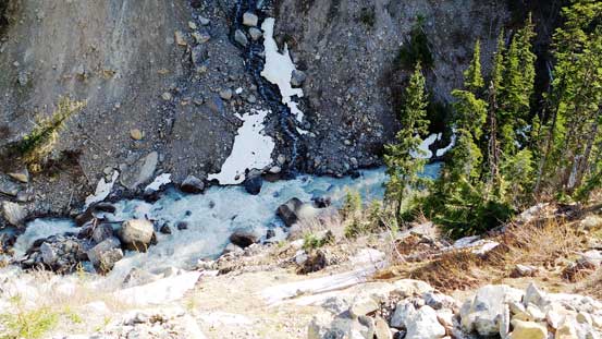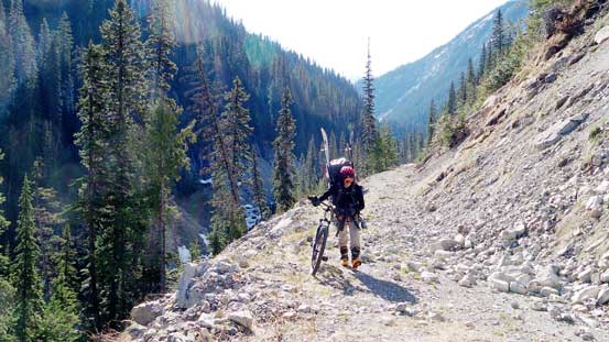 Now all the hard parts were over except for the river crossing. I was suspecting it to rise a bit higher given the heat in this couple days, but once we arrived there we had to realize it got a whole foot or so higher. Thankfully it was still manageable (a bit higher than knee deep with good route-finding). Half an hour later we arrived at the bikes and got to enjoy a fast return back to the car. It was a bit interesting to bike steeply downhill with the huge pack though. Back at the car we saw a huge porcupine wondering around, but thankfully no damage to the car which was a huge relief.