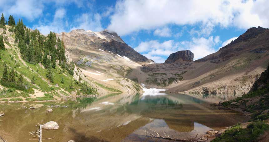Emerald Lake is a fairly long drive from Calgary, given the good forecast in afternoon, we decided to do a not-so-early start. We met at Lake Louise at 8AM and started shortly after 9AM. This is the second time this summer I had a really hard time at the start of the trip (last time was Mount Edith). I rested for 6 days since last trip (Mount Northover) but I didn’t do any warm-up before going up the steep Hamilton Lake Trail, and obviously, I suffered from that. My muscle almost got cramped… Okay, the trail itself is fairly steep and goes on forever. There’s very little view along the way, with almost 900m elevation gain. On the positive side, you gotta gain half of the elevation on a well-defined trail. Despite my not-so-good physical condition, we still managed to get to Hamilton Lake in just under 1.5 hours.