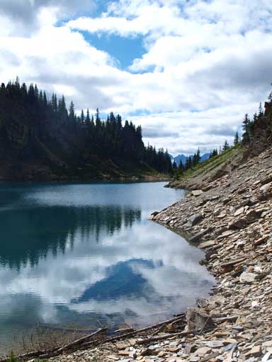 Andrea set up a fast pace descending the Hamilton Lake Trail. The grond is mostly dirt and soft soil which is easier on the knees. The trail really goes on forever and after eternity we broke through the trees and back to parking lot. We went to the nearby Emerald Lake for photos.