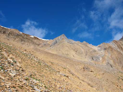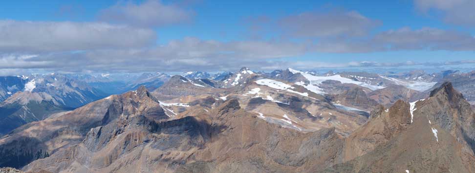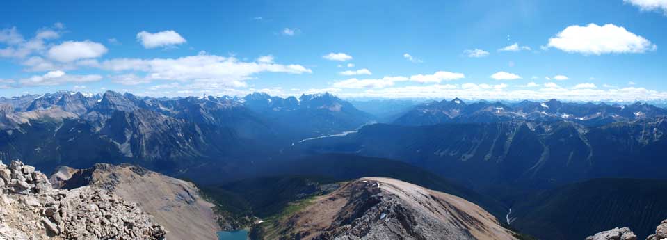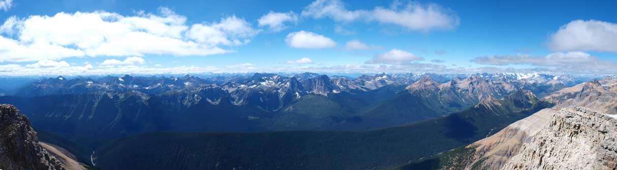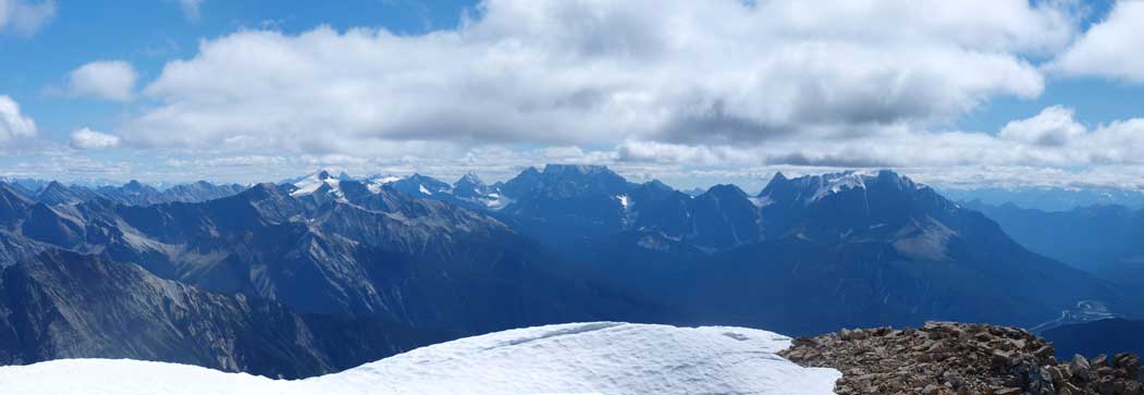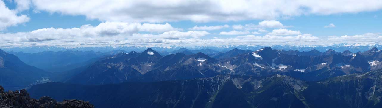 Once topping out on the south ridge, the view suddenly opened up, towards the Rockies’ west ranges and Columbia Mountains. I won’t show photos now as the weather wasn’t good at this point. The upper ridge looks inviting and we soon started up.
