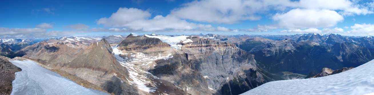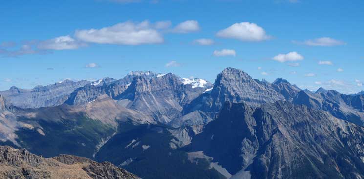 It’s late August, and time for some big mountains. When Andrea asked me about this weekend’s plan, I threw out my idea, doing 2 of these back to back: Coleman, Chephren, Sarbach, Stephen, Carnarvon and Daly. I let her choose and she picked Mt. Coleman and Mt. Carnarvon. These two are the easier options among the 6, but doing them in one weekend isn’t for the faint of heart as both mountains are rated as difficult with elevation gain of more than 1700m… There’s some light dusting of new snow from the previous storm but we figured the daytime heat should (hopefully) melt them quickly. Speaking our first objective, Mt. Carnarvon is a big mountain in the heart of Yoho National Park with its south ridge offering a non-technical route up.