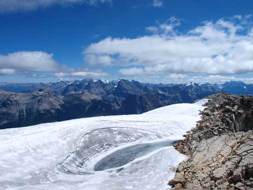 Once on the summit, the view towards Wapta Icefield suddenly showed up. Awesome view but I didn’t get a “Wow” moment because I’ve done too many mountains in Yoho this August. Kiwetinok Peak to McArthur to Kerr already gave me the similar view of Wapta Icefield and the West Range / Selkirks & Purcells. Wapta Mountain gave me the view of Lake Louise – O’Hara group and Mount Stephen and Vaux, as well. But if Carnarvon is my first peak in Yoho, I would get a big “WOW” moment for sure. The weather was bad due to low ceiling clouds. We had a summit nap and were treated with better views soon.