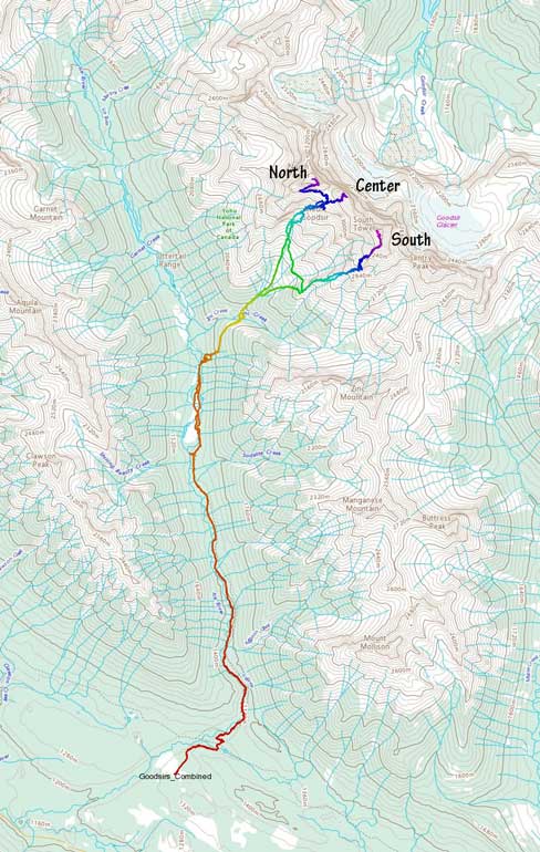 In about half an hour we were out of Beaverfoot FSR and back to civilization by late afternoon. It’s obvious that I wouldn’t be able to push far back on the drive today and Michel kindly offered me a stay at his home in Golden. Michel also showed me one of the better restaurants in town and that was awesome. I got some much-deserved hours of sleep and the following day I drove all the way back to Vancouver with Tsar, Ellis, Somervell and three towers of Goodsirs all in the bag. It’s been 16 days since I left home and this sure had been a very successful trip. Many thanks to Michel for accompanying one of the harder missions of my 11,000ers project and I’m looking forward to do more with him. In terms of how hard the Goodsirs I would put it behind Alberta and Robson and possibly also behind Deltaform and Helmet, but that’s because I’m very experienced in loose rocks. But no matter what The Goodsirs deserve respect. If you pulled them off unscratched then you’ve used some of your luck, no matter who you are. That’s the end…