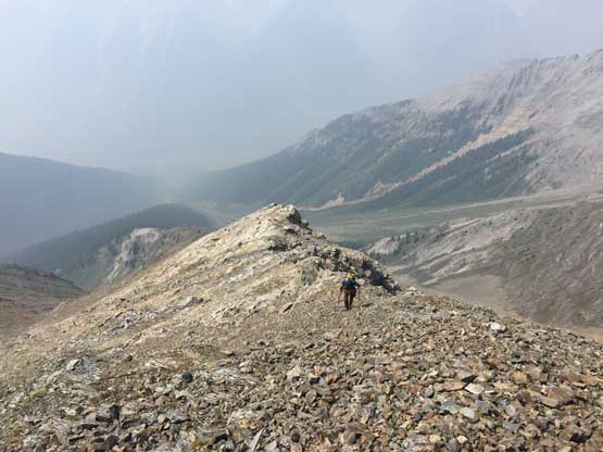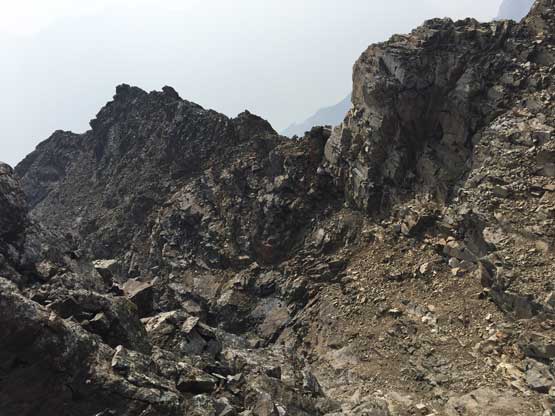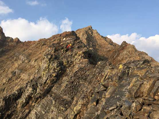 Higher up the ridge levels out a bit, but still “difficult scrambling”
