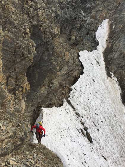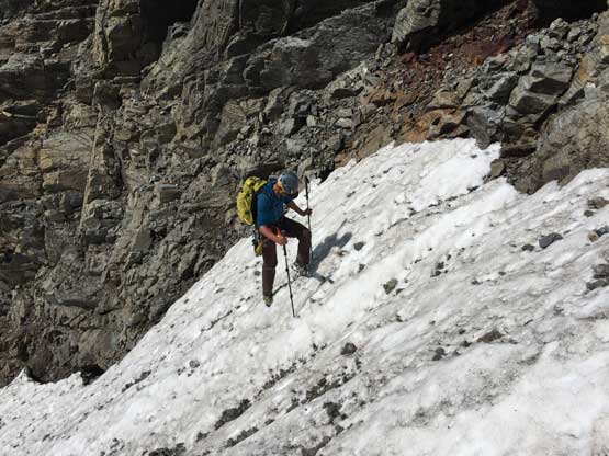 We kept traversing diagonally due climber’s right. It’s getting steeper