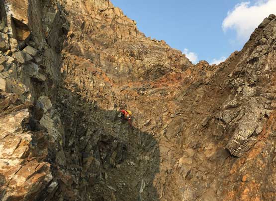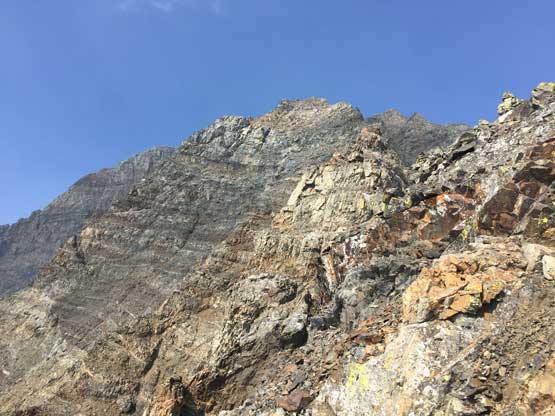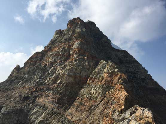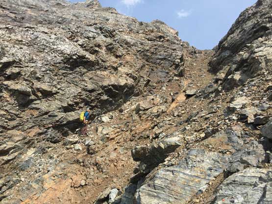 Onto the NE Face of the summit block. More “difficult scrambling” with exposure