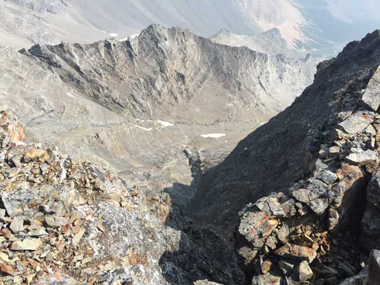 After a lot of struggling we made to a 3000m notch. This is looking at the south side