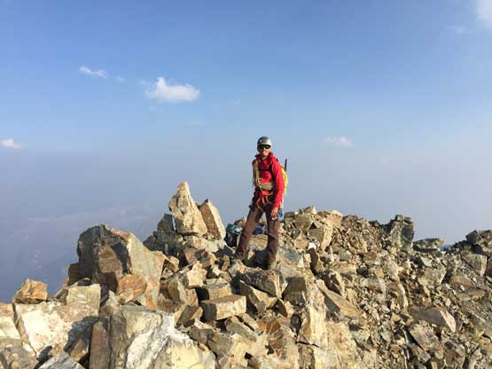 Michel on the summit of Mt. Goodsir – South Tower with the North Tower behind