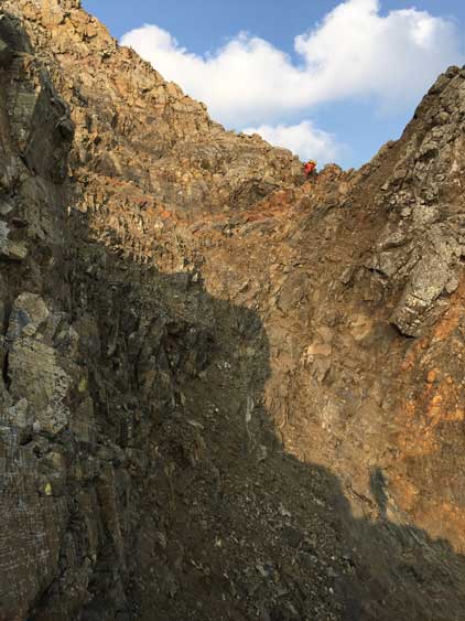 Michel finishing the gully-of-shit onto the 3000-m notch