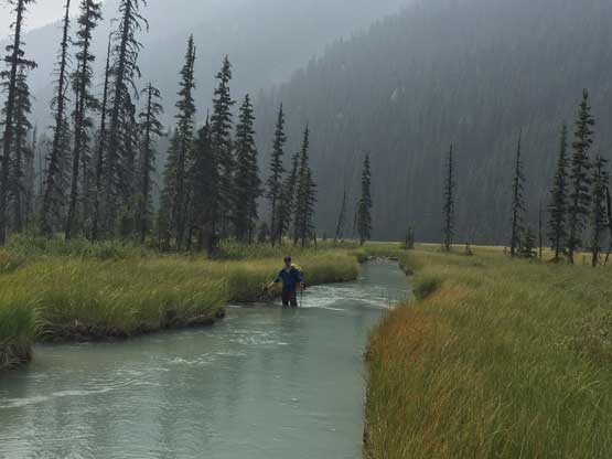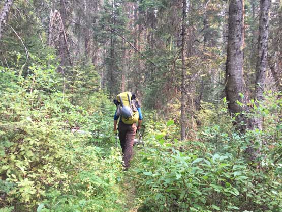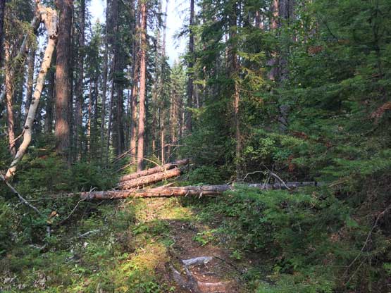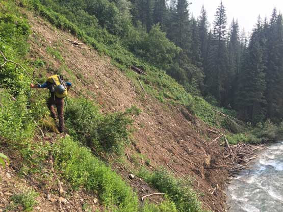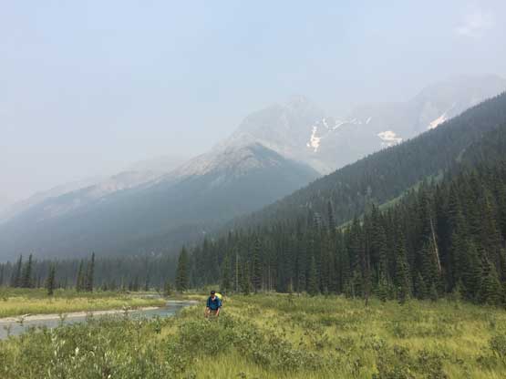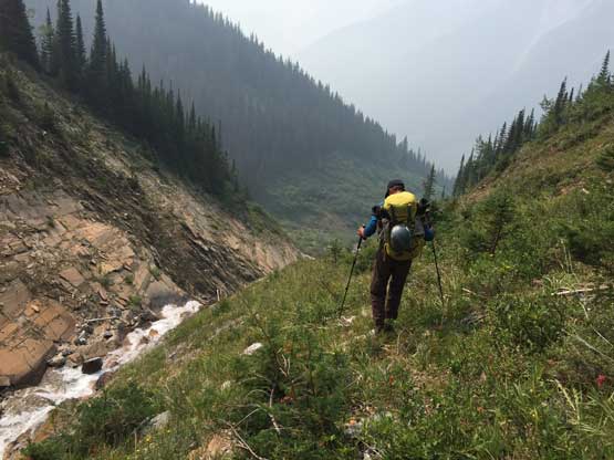 The traverse back to our own camp sucked again but that’s child’s play comparing what we just did. We took our time packing gears and in about an hour we saw Jim and Raff descending the lower ridge and then started the long plod back out the Ice River approach. The descent from 2300-m bench down into the north fork of Zinc Creek drainage sucked balls but let’s face it. We found a better way near the converging triangle of Zinc Creeks and then picked up the trail. Hiking down this climber’s trail was the most pleasant part and then we were in the swamp. I took my time donning running shoes this time to save my trail-runners for the return hike. The few stream crossings were now almost hip deep. Michel enjoyed the rivers more than I did but either way we made back to the warden’s cabin taking another lengthy break drying off the clothing. I swapped the footwear back to trail-runners and then Michel led us out of Ice River trail on a blistering pace. The hundred deadfalls did not seem as bad as on the way in, at least they were dry by now, but still sucked. As pretty as this valley is I’m 100% sure Ice River will never see me again.