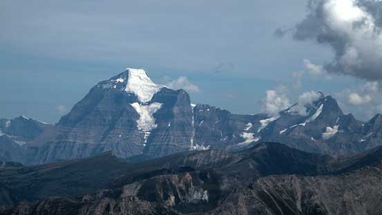 Traversing to Mt. McKirdy looked straightforward, but again, involved a big elevation loss down to the col. We ditched backpacks at the col, and up the other side, terrain was again, steep and loose. I already felt quite tired at this point thank to the big day on Cinnamon, but with a bit of perseverance we all made to the top. If not because of the smoke the view from this summit would be fantastic towards each direction. We stayed on the summit for a long time before committing to the descent.