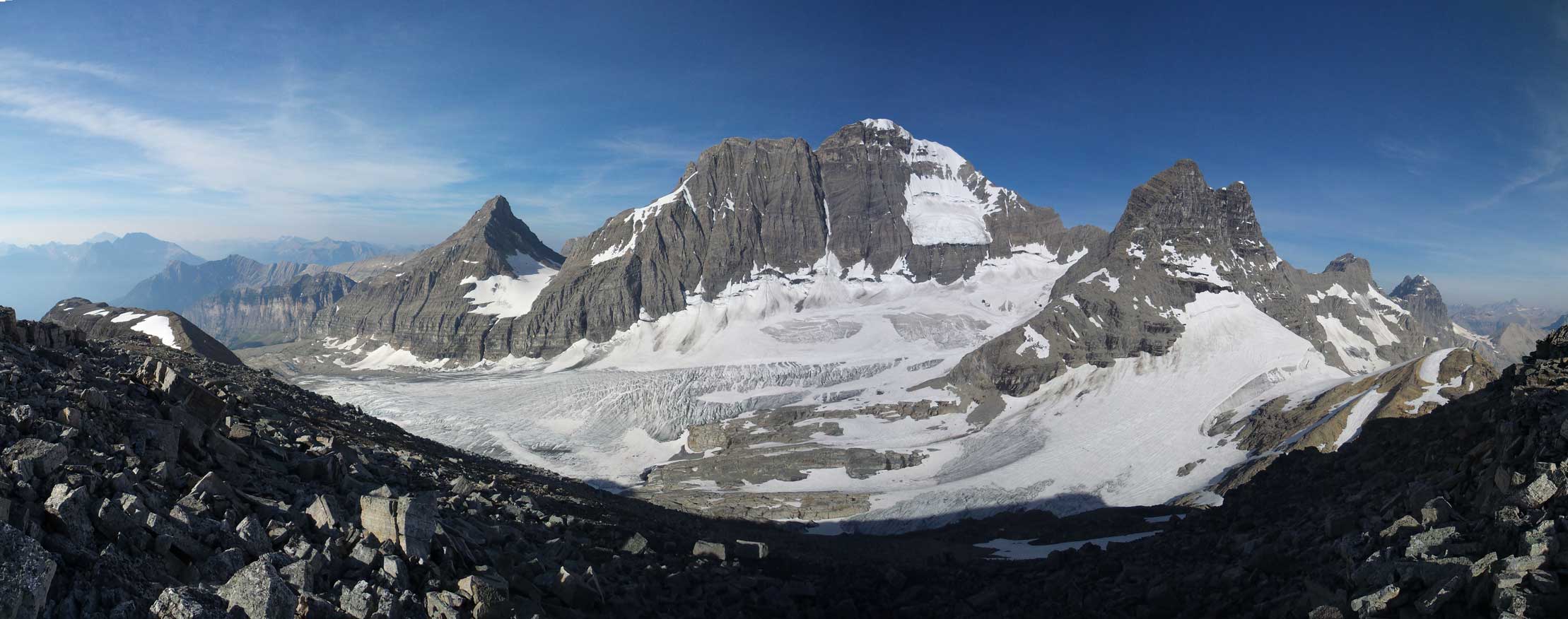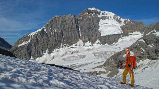 We woke up by about 4:15 am and quickly got started. The approach up this hanging valley was longer and more complicated than we thought especially with head lamps on. There was some micro terrain requiring route-finding and neither of us had done a lot of research about Prince Albert. Near the toe of the glacier we voted to head left since that would give us a more direct line towards Prince Albert. All started well but we’d soon enter a huge crevasse field. With the glacier being dry we managed to step or jump across many of those but eventually we ran out of luck. A couple really huge ones blocked our direct route and we were forced to head climber’s left onto the snow.