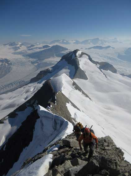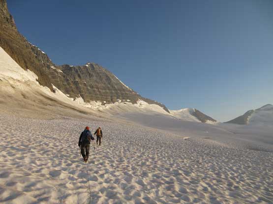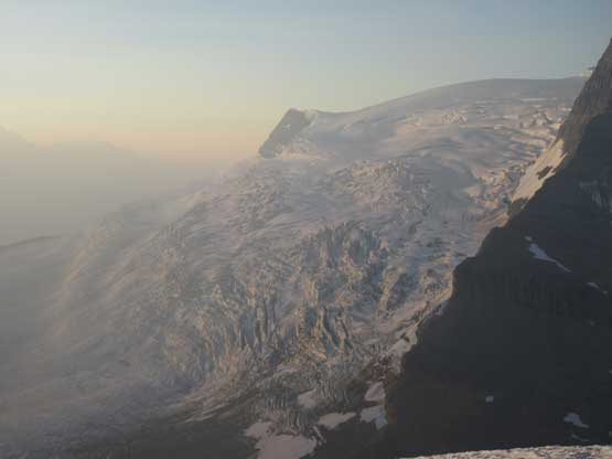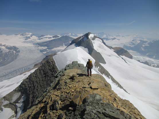 Getting to the summit of Mt. Somervell is by no mean an easy fair. There are only two published routes and the original F.A. route is long gone due to glacial recession and global warming. Both Rick Collier and David P. Jones’ group used a combination of snow and choss on the NE Ridge and E. Face and that’s exactly what we would do. Jeff, Lyle and I had spent a couple days discussing the route choices and having already made an ascent of Mt. Ellis helped confirming our decision. The complete NE Ridge was very attractive but we wanted to avoid steep snow for as much as possible thank to the ridiculously warm temperatures.