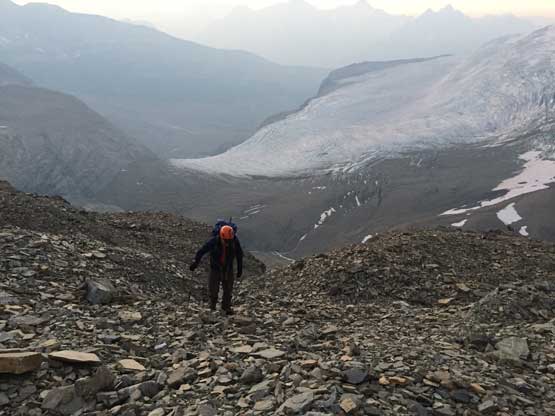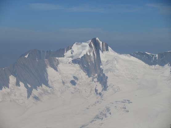 Getting to the summit of Mt. Somervell is by no mean an easy fair. There are only two published routes and the original F.A. route is long gone due to glacial recession and global warming. Both Rick Collier and David P. Jones’ group used a combination of snow and choss on the NE Ridge and E. Face and that’s exactly what we would do. Jeff, Lyle and I had spent a couple days discussing the route choices and having already made an ascent of Mt. Ellis helped confirming our decision. The complete NE Ridge was very attractive but we wanted to avoid steep snow for as much as possible thank to the ridiculously warm temperatures.