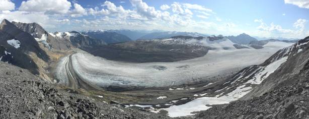 Panorama of Cummins Glacier west of the ridge. Click to view large size.