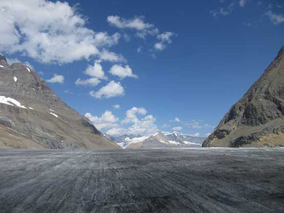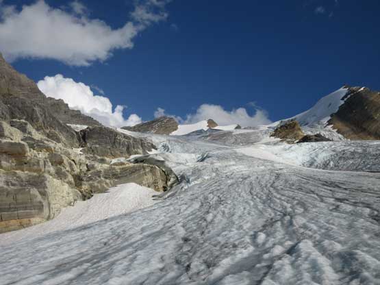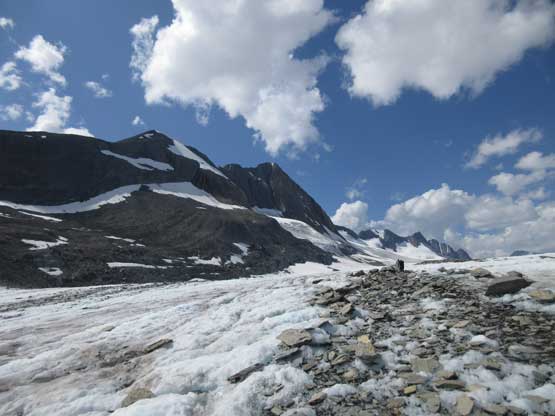 Following a strip of moraine towards the base of Reconnaissance Ridge