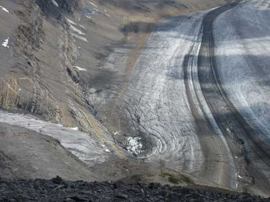 The meet-up point of Tusk Glacier and Cummins Glacier
