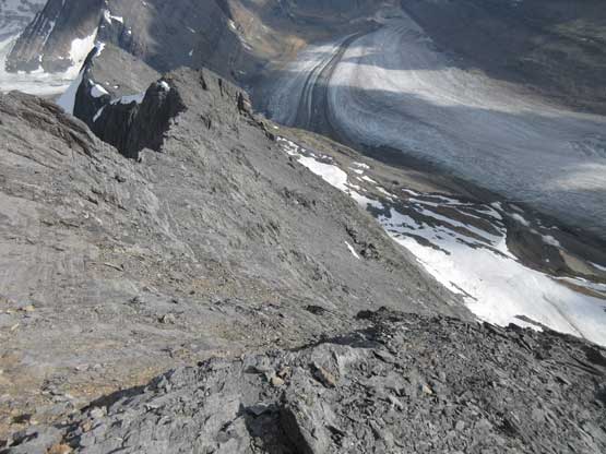 This is the loose ledges that I had to find a way down. 3rd class choss with exposure