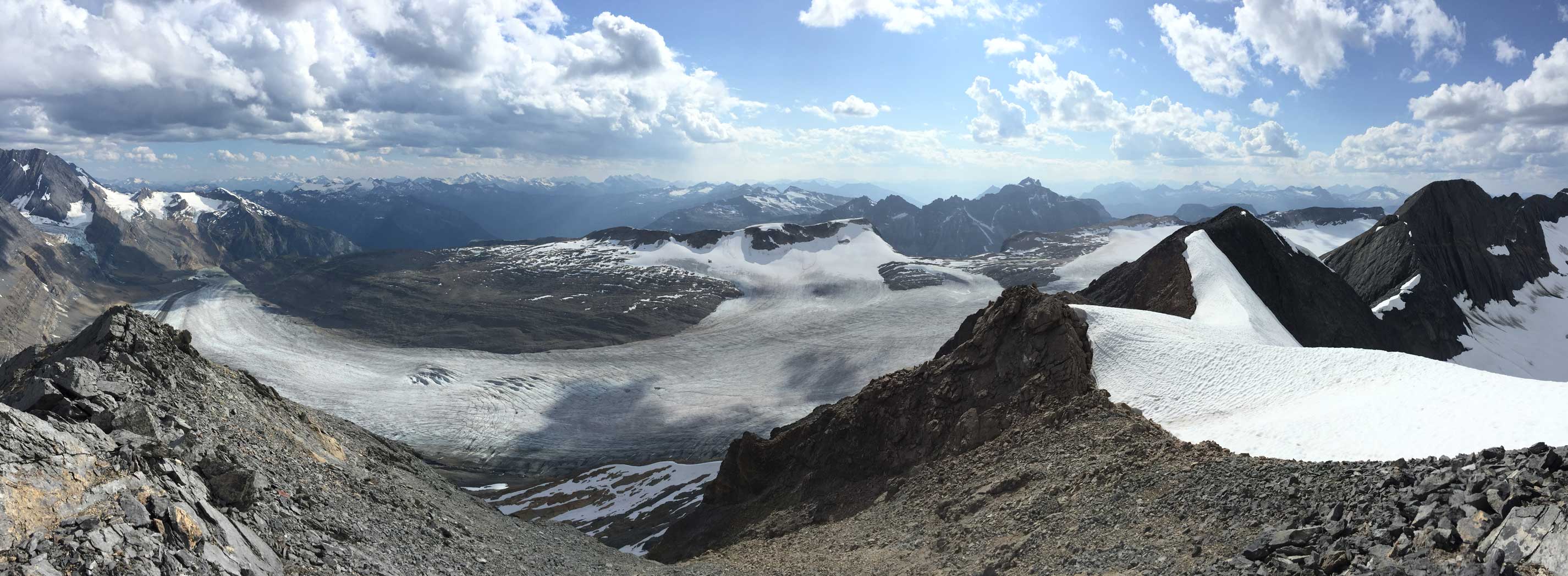 A panorama from the center of Tusk Glacier towards Tusk Peak. Click to view large size.