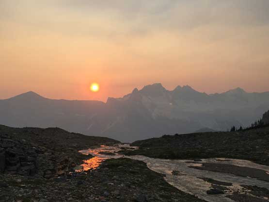The last piece of this adventure was driving out of the Sullivan FSR. The drive was uneventful although I would wish to be able to see more of the area. The clouds and smoke had obscured the views. The first thing after getting back into civilization was checking the weather forecast. After two days of thunderstorms another high pressure was supposed to kick in so that meant I would stay in Golden and get ready for The Goodsirs.