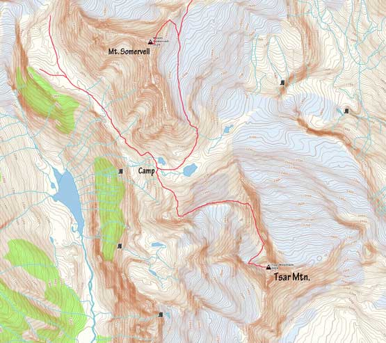 On Aug. 8th the three of us (Jeff, Lyle and I) went for Mt. Somervell while Gen and Pedro went for Tsar Mountain. This was a very successful day that everybody achieved their goals. Mt. Somervell is a very rarely ascended summit and far from “easy” to tag. We made the 4th ascent in history after the F.A. party, Rick Collier’s group and then David Jones’ group. The entries in this register is a real time log of who-is-who…