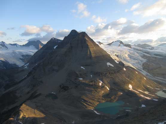 Located on the southern edge of Clemenceau Icefield the iconic pyramid of snow, ice and rock named Tsar Mountain is THE MOST REMOTE among the 54-58 11,000ers of the Canadian Rockies. This is said after putting 3 years into the research with countless hours spent on all kinds of maps looking for the easiest access into the area. I could not find one, neither could my friends. For those into the purist, 2-week self-propelled type of adventure and capable to carry backpacks over 80 lb, here’s the short summery of my research. Unfortunately I could not physically handle the pack weight so the approach I used is by taking an Alpine Helicopter…
