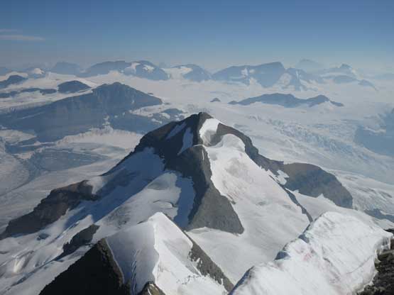 Around 3 pm the helicopter showed up. The 7 of us were ferried to a 5-star campsite near Tsar/Somervell col in two trips. The weather was partly cloudy and the rest of this day was spent setting up camp and cooking. We brought a lot of redundancies up there including canned food and extras that you normally do not see in the backcountry. The plan for the following day was Mt. Ellis. This is the easiest peak in this region that offers an excellent reconnaissance. From the summit we could see the immense icefields nearby and for the most important we could decide whether a 3-day side-trip to Mt. Shackleton is feasible or not. This day turned out to be pretty much as expected. We got a rarely ascended but not-so-tiring summit with excellent views and we did make a decision that Mt. Shackleton was unlikely to happen. The glaciers were too broken to even worth exploring towards that direction.
