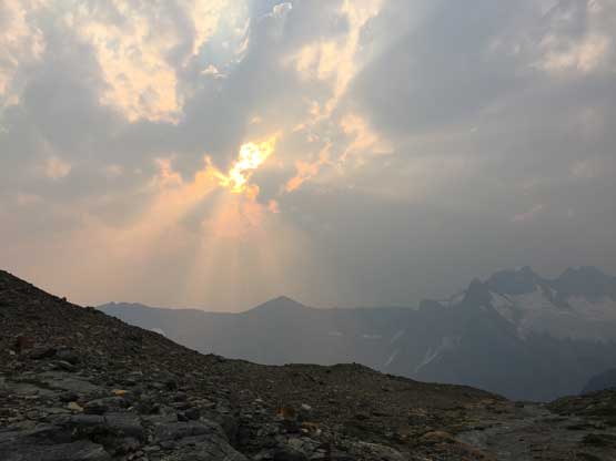 The last piece of this adventure was driving out of the Sullivan FSR. The drive was uneventful although I would wish to be able to see more of the area. The clouds and smoke had obscured the views. The first thing after getting back into civilization was checking the weather forecast. After two days of thunderstorms another high pressure was supposed to kick in so that meant I would stay in Golden and get ready for The Goodsirs.