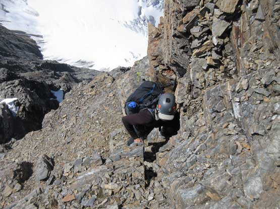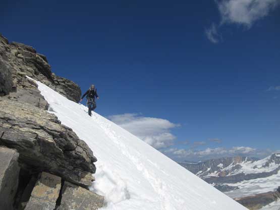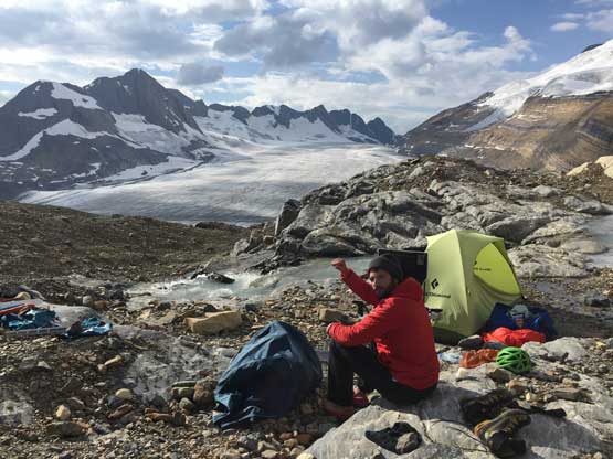 On the 4th day the plan was to lazy out at camp but after a while we started to get bored. Given the conditions we wouldn’t be able to climb anything on snow anymore so Mt. Shipton even Mt. Chettan was out. The only summit doable was Reconnaissance Ridge and even that peak looked a bit sketchy towards the very top. At 3:30 pm I made a call to scramble Reconnaissance Ridge but Oakley opted to rest at camp. The scramble turned out to be an exposed 3rd class near the top with very shitty rocks.