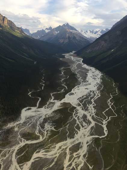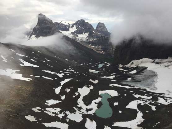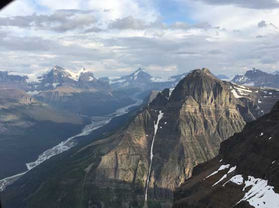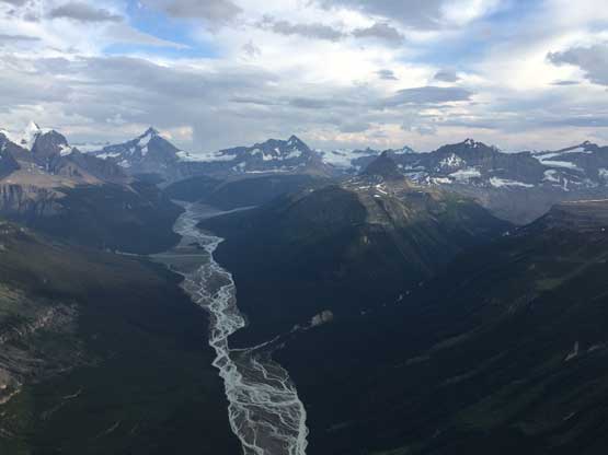 The planned helicopter pick-up was before noon on Friday (Day 5) so we slept in till 9 am, had a leisure breakfast and packed things up. There wasn’t enough time for us to do anything on the last day so we just waited. Oakley received a message via inReach at 11:30 am that the heli had arrived at Fortress Lake but in another half an hour we had no sight of the heli. Oakley texted back to his boss and sure there was a problem. Ralph forgot to pick us up and a young pilot came to the campsite instead of Ralph himself. The young pilot were not allowed to fly into unknown locations and the new plan was to pick us up at 7 pm. This was not good because the weather was supposed to turn shit in the afternoon and remain shit for at least the next three days. I did have extra food but Oakley had zero extra food to stay for even one extra day. What a shit show… We were both very angry about the mess so we texted back saying we had no food and if Ralph couldn’t pick us up in the evening then our only “alternative plan” was to press SOS to initiate a rescue. I have learnt from international travelling/climbing friends that sometimes you must push people in a pressurized way and this came in practice. The weather did hold off for us but was apparently very shitty in the Alberta side of the divide, but Ralph did come at 7:30 pm to pick us up. Oakley had to be dropped off at Fortress Lake for work and it was already pouring at the lake. The flying back to Cline River was scenic and very dramatic. Awesome weather as we flew by Mt. Alberta but the last leg down Cline River was done right in an intense lightning storm…
